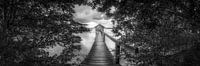 Over ‘Romantische loopbrug aan de Ammersee in Beieren in zwart-wit .’ van Manfred Voss, Zwart-Wit Fotografie