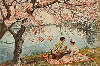 Romantische picknick onder bloeiende kersenbomen van Imperial Art House