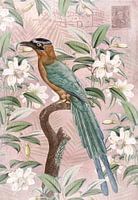 tropische vogel met exotische planten en bloemen op uitstekende achtergrond