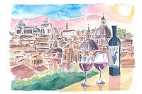Romantische wijn in Rome Italië met panoramisch uitzicht vanaf de heuvel
