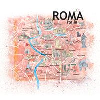 Rome Italië Geïllustreerde Kaart met Bezienswaardigheden, Hoofdstraten en Highlights van Markus Bleichner