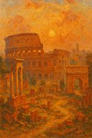 Rome bij zonsondergang legt het oude hart van de Eeuwige Stad vast onder een stralende hemel van amber en roos. Het Colosseum, tijdloos en krachtig, wordt verlicht door de ondergaande zon, terwijl het Forum Romanum zich uitstrekt in warme, aardse tinten. Penseelstreken glinsteren als de hitte van de geschiedenis zelf en roepen zowel grootsheid als nostalgie op. Deze impressionistische compositie, geïnspireerd door Monets toewijding aan het licht, verandert steen in warmte en ruïne in poëzie. Het is een visuele ode aan de duurzaamheid van schoonheid - hoe eeuwen van kunst, rijk en cultuur nog steeds ademen onder hetzelfde gouden licht. Perfect voor liefhebbers van klassieke architectuur en sfeervolle kunst, roept dit werk reizen, herinneringen en eerbied op. In elk verfijnd interieur wordt Rome bij zonsondergang een portaal naar een ander tijdperk - een herinnering dat zelfs als de zon verdwijnt, de geschiedenis blijft gloeien.