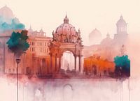 Rome in waterverf in pasteltinten dit ai gegenereerd beeld geeft duidelijk de sfeer van deze oude stad weer in dit beeld.