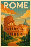 Een kleurrijk meesterwerk dat het indrukwekkende silhouet van het Colosseum omlijst, straalt Italiaanse flair uit. De warme terracotta kleuren en de helderblauwe lucht creëren een uitnodigende sfeer. Ideaal voor in de woonkamer, nodigt het je uit om te dromen van onvergetelijke reizen en de schoonheid van Rome te bewonderen.