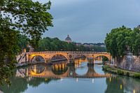 Een tijdopname van de de stad Rome genomen vanaf de Pont Garibaldi met deTiber rivier en op de achtergrond de prachtig verlichte Sixtijnse kapel