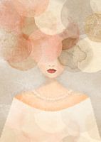 Surrealistisch, illustratief portret met een kapsel van waterverf in pasteltinten.
