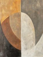 Een harmonieus spel van cirkelvormen en aardetinten, subtiel verdeeld in contrasterende vlakken. Perfect voor wie houdt van een zachte, moderne uitstraling.