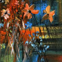 Bloemenschilderij in acrylverf en grafische elementen. Een kleurrijk en expressief bloemenschilderij voor de woonkamer. Het straalt optimisme en vrolijkheid uit. De schoonheid van de natuur biedt altijd onuitputtelijke inspiratiebronnen. Bloemenfantasieën zijn kunstig geënsceneerd....