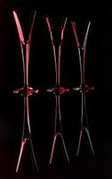 Dit krachtige, grafische kunstwerk transformeert drie slanke champagneglazen in een abstracte, architectonische compositie. Tegen een diepzwart, oneindig decor worden de glazen verlicht door een intense rode gloed, waardoor hun contouren en reflecties een ritmisch, neonachtig patroon vormen. De spiegeling op de ondergrond creëert een…
