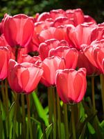 Rood/roze tulpen op stam. mooi Nederlands export product. Ze staan mooi voor in de tuin of in een vaas.