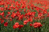 Koop dit bloemen kunstwerk Rood bloeiend klaprozenveld van Ulrike Leone op canvas, aluminium dibond, (ingelijste) fotoprint, behang en ArtFrame, op maat geprint in Fine-Art kwaliteit.
