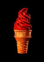 Rood ijs met bruin hoorntje in low poly abstracte illustratie met zwarte achtergrond.