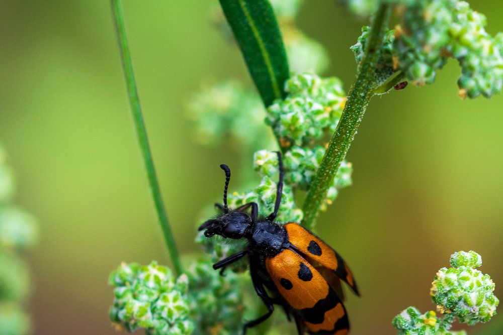 Rood kevertje op bloem in de Franse Alpen
