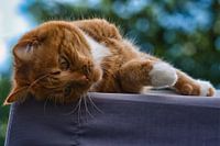 Rood met witte poes relaxen op een dak van Jolanda de Jong-Jansen
