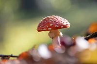 Rode paddestoel met witte stippen. Met een mooie bokeh, zachte achtergrond. In de herfst genomen.
