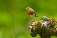 Roodborst (Erithacus rubecula) zittend op stronk van Chris Stenger