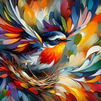 Roodborstje, diverse kleurrijke penseelstreken die op elkaar overlopen
