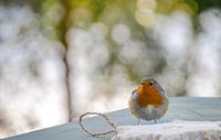 Koop dit vogel kunstwerk Roodborstje doet zich tegoed aan vet van Rietje Bulthuis op canvas, aluminium dibond, (ingelijste) fotoprint, behang en ArtFrame, op maat geprint in Fine-Art kwaliteit.