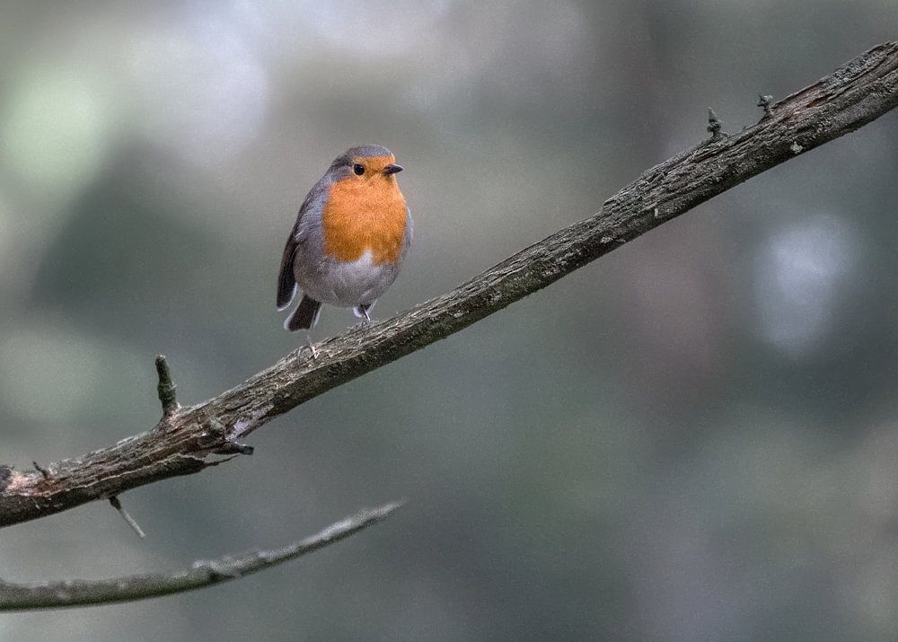 Een roodborstje op een tak in het bos bij Otterlo, Gelderland. Genomen in de herfst met een telelens.