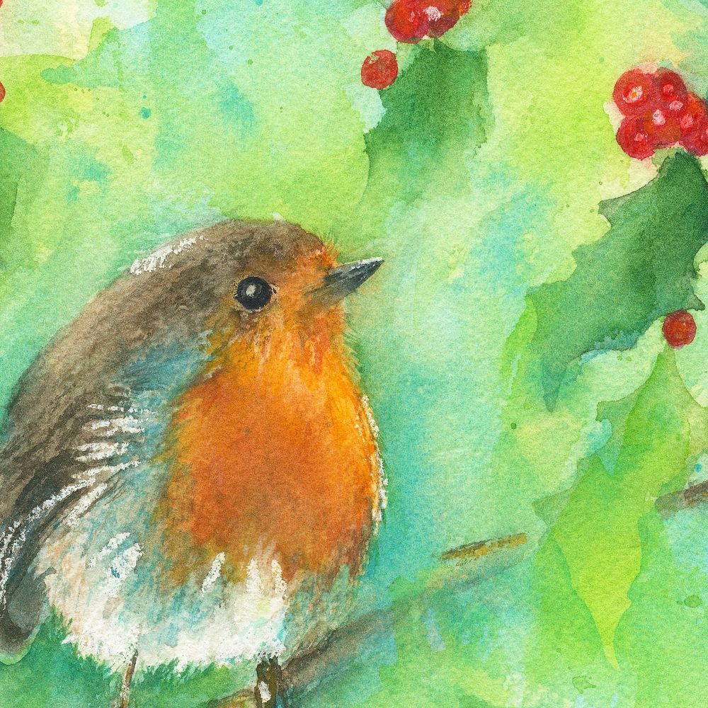 Dit schilderij is een uitsnede van mijn aquarelschilderij Robin in the Ilex Bush. Het originele schilderij is geschilderd in liggend formaat en is hier ook verkrijgbaar in mijn shop. Hier is gekozen voor een cut-out in vierkant formaat. Een andere cut-out in staand formaat is ook verkrijgbaar in mijn shop. Kies zelf welk formaat het beste in jouw kamer past.