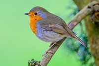 Koop dit vogel kunstwerk Roodborstje zittend op een tak met een groene achtergrond van Sjoerd van der Wal Fotografie op canvas, aluminium dibond, (ingelijste) fotoprint, behang en ArtFrame, op maat geprint in Fine-Art kwaliteit.