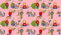 Doorlopend patroon met van alles dat met het sprookje roodkapje te maken heeft, ooit geschreven door de gebroeders Grimm