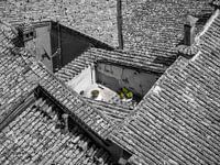 Dit kleine dakterras midden tussen de daken van Orvieto viel op terwijl ik het uitzicht vanaf de klokkentoren bewonderde.