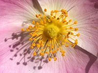 Deze wilde roos op het zuidwesten leent zich voor een macro-foto, waarbij de meeldraden goed in beeld komen ...