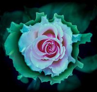 Een roos met zwarte achtergrond in diverse kleurcombinaties (zie ook de andere afbeeldingen in deze serie) Iedere foto is in Photoshop bewerkt tot dit uiteindelijke resultaat.