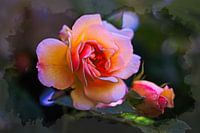 Digitale bewerking van een close-up van de roze bloem van een Roos.