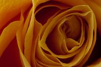 Close-up van een gele roos. De textuur en complexiteit zijn goed zichtbaar.
