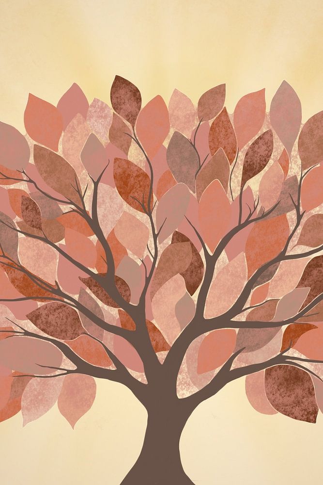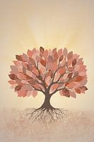 Digitaal geschilderd kunstwerk van een boom met een stevige stam en volle kruin met bladeren.