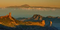 Uitzicht vanaf Pico de las Nieves naar Roque Nublo (1813m) en de Teide op Tenerife, Gran Canaria, Canarische Eilanden, Spanje