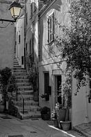 Roquebrune ligt aan de Franse riviera tussen Monaco en Menton. Het is een eeuwenoud dorpje met een als bekendste gebouw het karolingische kasteel uit de 10e eeuw. Dit werk toont één van de romantische straatjes bij het kasteel. Dit werk is zowel in kleur als zwart wit verkrijgbaar.