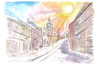 Willemstad Curacao Koningin Emmabrug Uitzicht met zonMarkus Bleichner Verliefd op een prachtige Caribische zonsondergang in aquareltechniekMarkus Bleichner