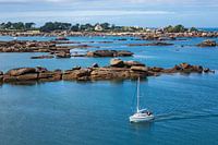 Rosa Granitküste in der Bretagne bei Ploumanach, Frankreich.