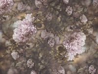 Rozentuin, compositie van rozen op een zachte fine art achtergrond, kleurrijke bloemblaadjes en bladeren vullen het frame om u mee te nemen naar een magische tuin.