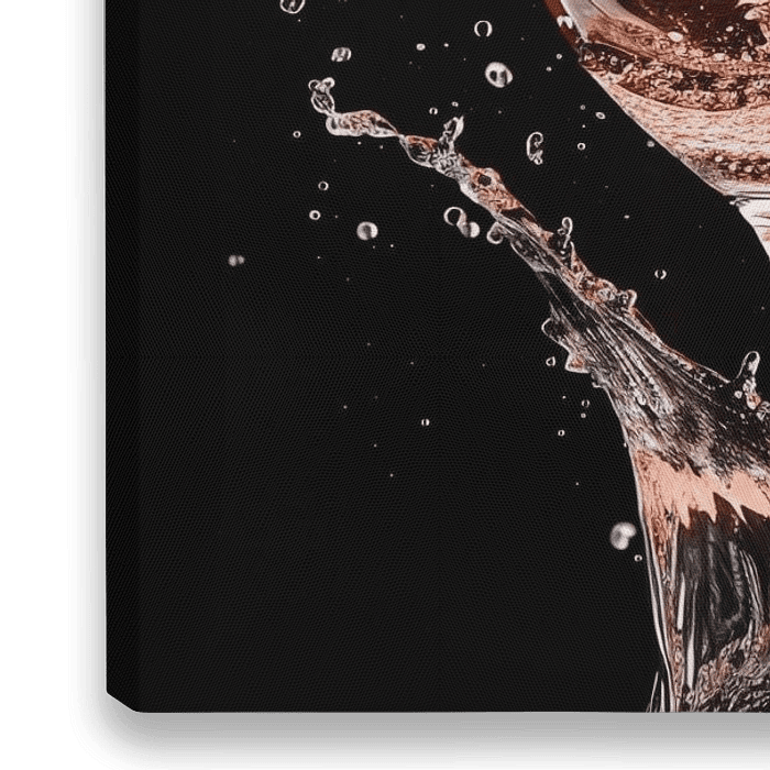 Het rosé wijn splash portret panorama schilderij is een expressief en elegant kunstwerk dat de dynamiek en verfijning van rosé wijn op unieke wijze vastlegt. In dit panoramaformaat spat een vloeiende beweging van wijn krachtig naar voren, vastgelegd in een subtiele balans tussen abstractie en realisme. De sierlijke vorm van de splash…