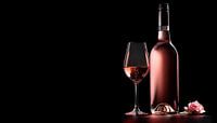 Roséfles met glas en roos panorama schilderij dat een prachtige luxe aanvulling zal zijn in elke kamer. Met zijn unieke en stijlvolle uitstraling trekt het direct de aandacht. De schitterende kleuren en het bijzondere ontwerp maken dit kunstwerk 100% uniek en origineel. Het is de perfecte fotoprint om je interieur helemaal compleet te maken.