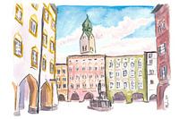 Rosenheim Max-Josef-Platz Uitzicht op de oude stad en St. Nikolaus