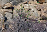 Grüne Rosenköpfchen Papageien in einem abgestorbenen Baum - Baum mit Papageien als Blätter