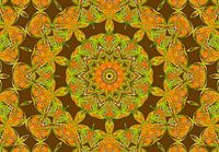 Een vorm van digital art. Een figuur of mandala in okergele tinten passend bij de moderne kleur 'Spiced Honey', bijvoorbeeld. Dit beeld is al een keer afgedrukt en 'droogt fantastisch op'. Ook gaat dit beeld lichtelijk terug naar de tijd van retro en flowerpower! Maar laten we die joint nu niet meer opsteken...Toch? Wist je dat dit beeld in meerdere kleuren leverbaar is?