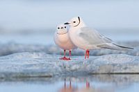 Paartje prachtige Ross' Meeuwen (Rhodostethia rosea) staand op drijfijs in noord Alaska, USA.
