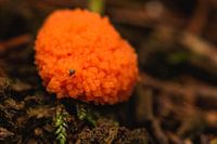 Deze zwam steekt met zijn fel oranje kleur, mooi af tegen de donkere achtergrond. Ook de structuur van de zwam komt duidelijk naar voren.