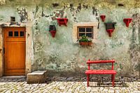Koop dit stilleven Rote Bank vor grünem Haus van Gunter Kirsch als print op canvas, aluminium dibond, (ingelijste) fotoprint, behang en ArtFrame. Voor jou op maat geprint in Fine-Art kwaliteit.