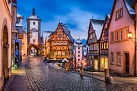 Middeleeuwse stad Rothenburg ob der Tauber bij nacht, Duitsland