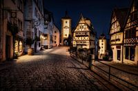 De historische oude binnenstad van Rothenburg ob der Tauber in sfeervol avondlicht.