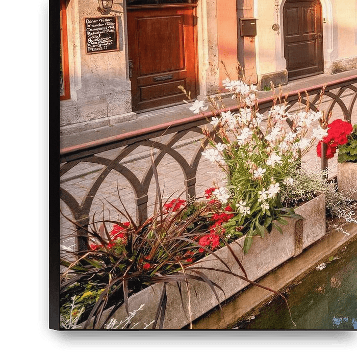 Jouw gekozen kunst op doek, gespannen in een aluminium frame. Snel en eenvoudig te verwisselen voor een frisse uitstraling en helemaal zoals jij het wilt.
