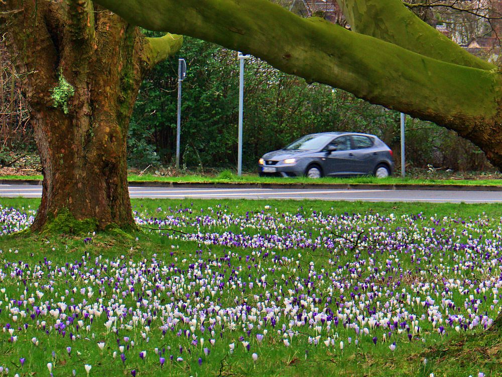 Krokusbloesem op de rotonde naar de A2 in Gelsenkirchen