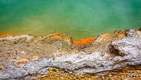 Rotorua - abstract, Nieuw Zeeland. In het geothermische gebied bij Rotorua zie prachtige kleuren en vormen in het bijzondere landschap. Dit detail is een abstractie van de oever van een bron.